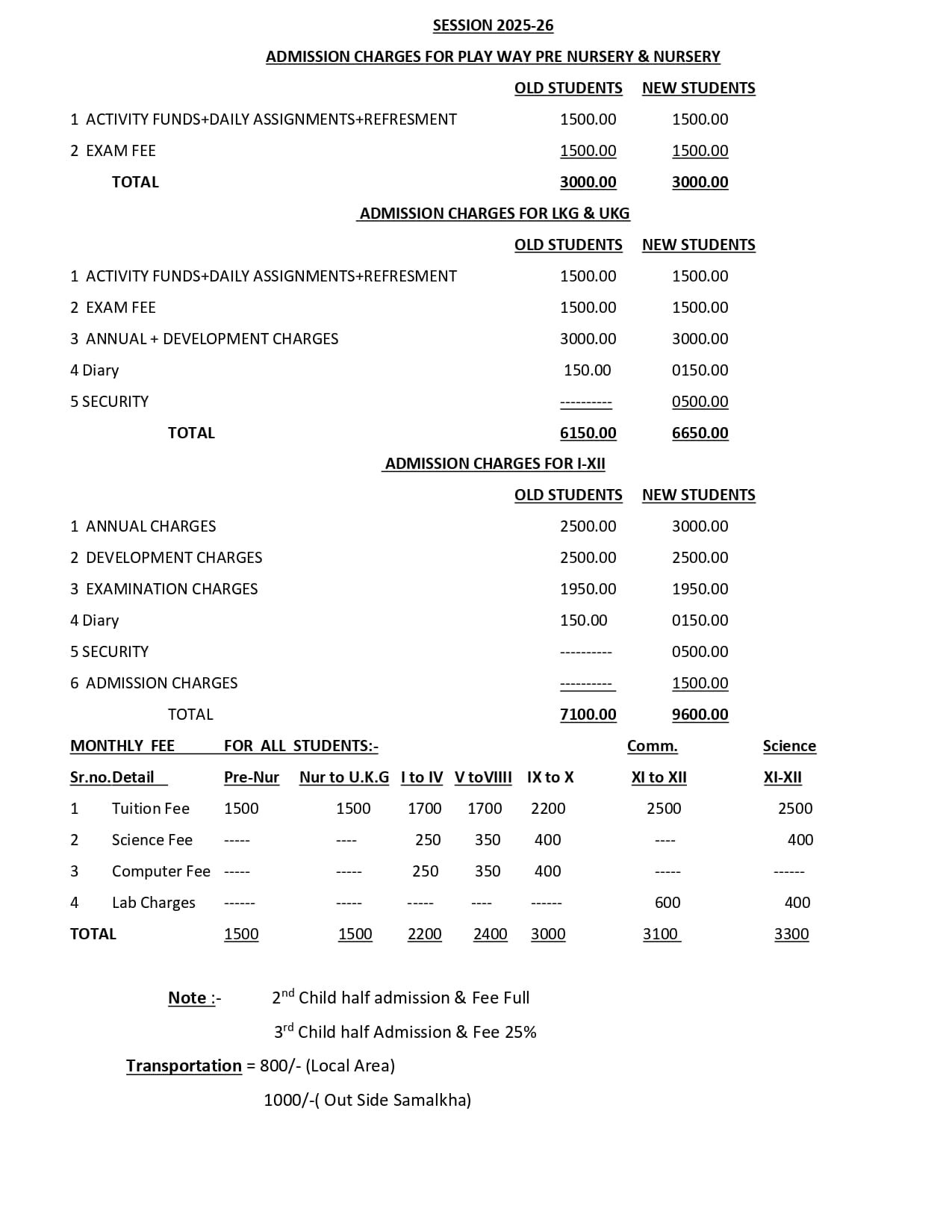 Fee Structure